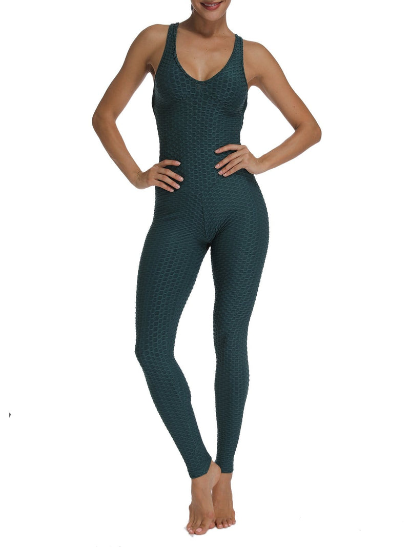 Women's Backless Solid Color Textured Yoga Jumpsuits