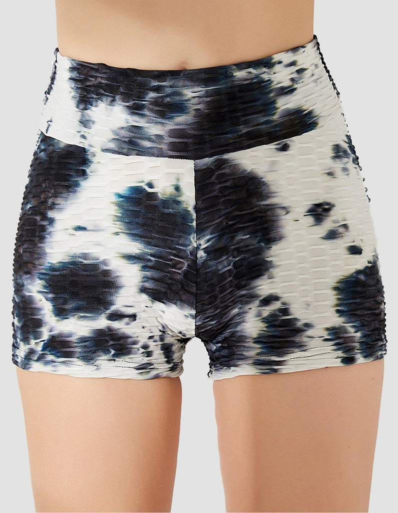 Tie-dyed Textured Ruched Shorts Black and White
