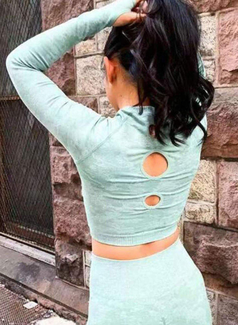 Long Sleeve Seamless Hollow Fitness Crop Top